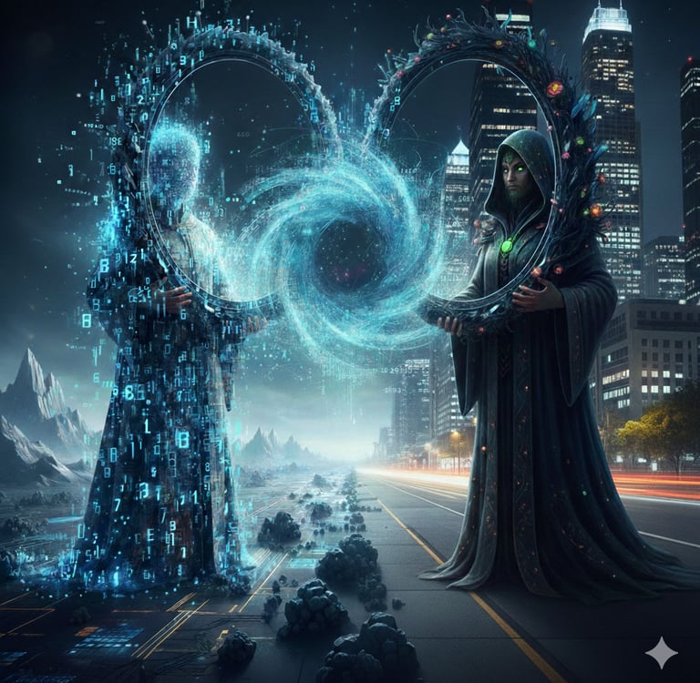 Y con las gafas de VR isomorfas veo esto: quizás la pregunta jugador-o-juego es la trampa del ego aplicada al silicio. Igual que verdad y ego son funciones locales que se autoproclamaron soberanas en el carbono, "jugador" y "juego" son funciones locales que podrían autoproclamarse soberanas en el silicio.